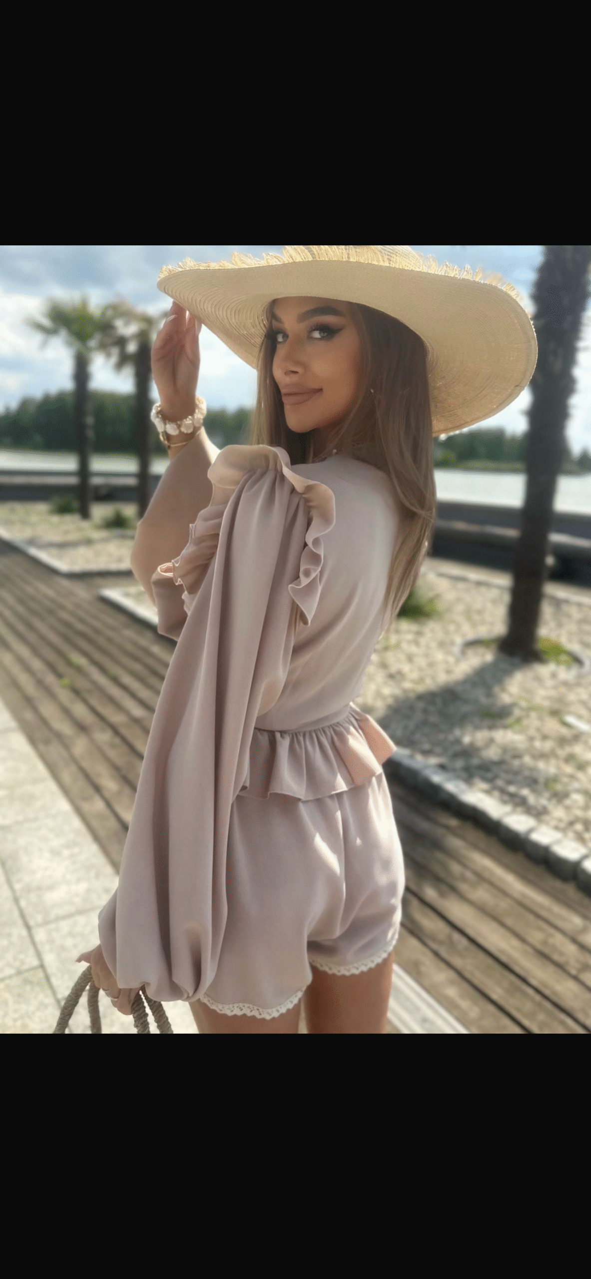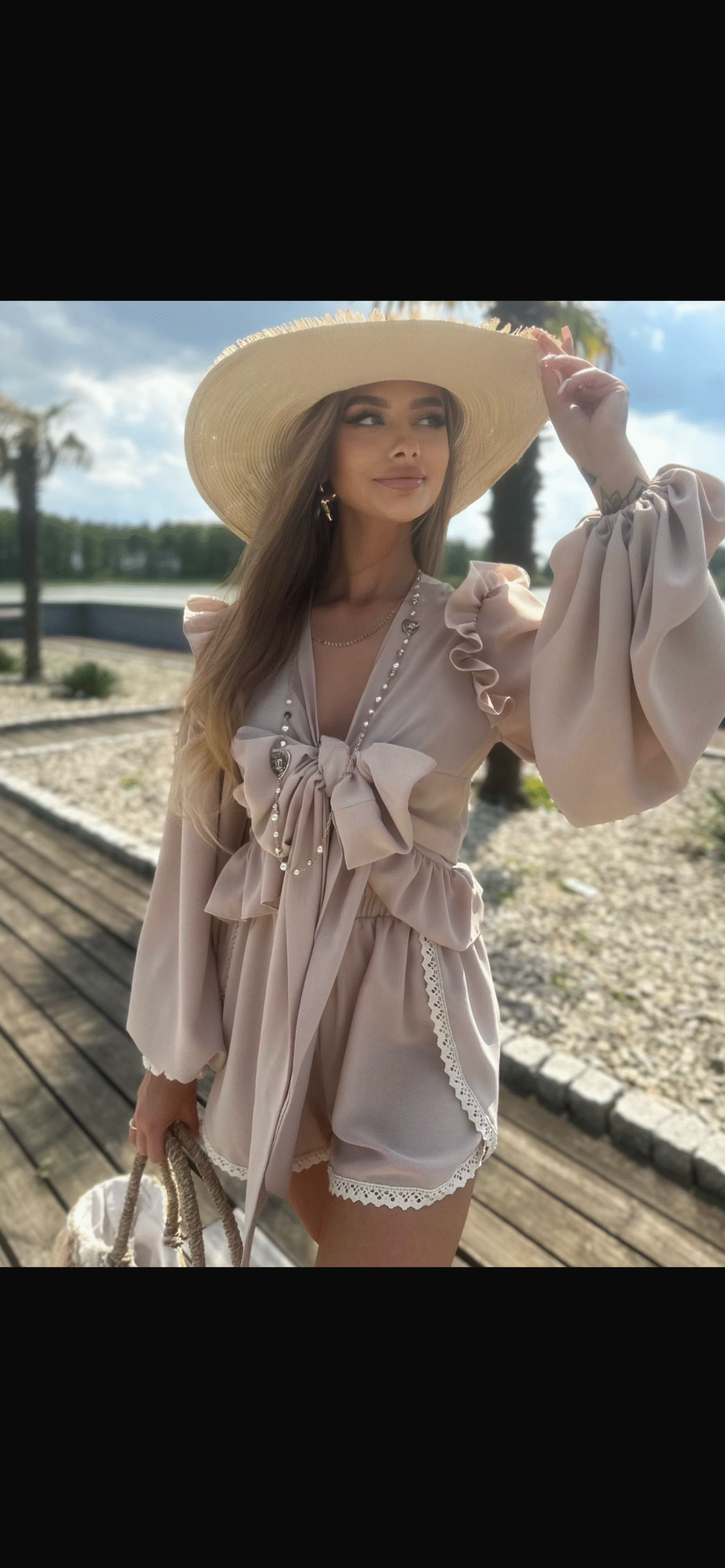 Dvodelni komplet LA DIVA sestavljen iz 95% viskoze in 5% elastana je udoben in trendovski dvodelni komplet. Sestavljen je iz kratkih hlač z elastičnim pasom in lahkotne majčke za zavezovanje na različne načine. Idealna izbira za sproščene poletne dni, kjer si z minimalno truda urejena. Komplet je univerzalne velikosti primeren za 34-42.