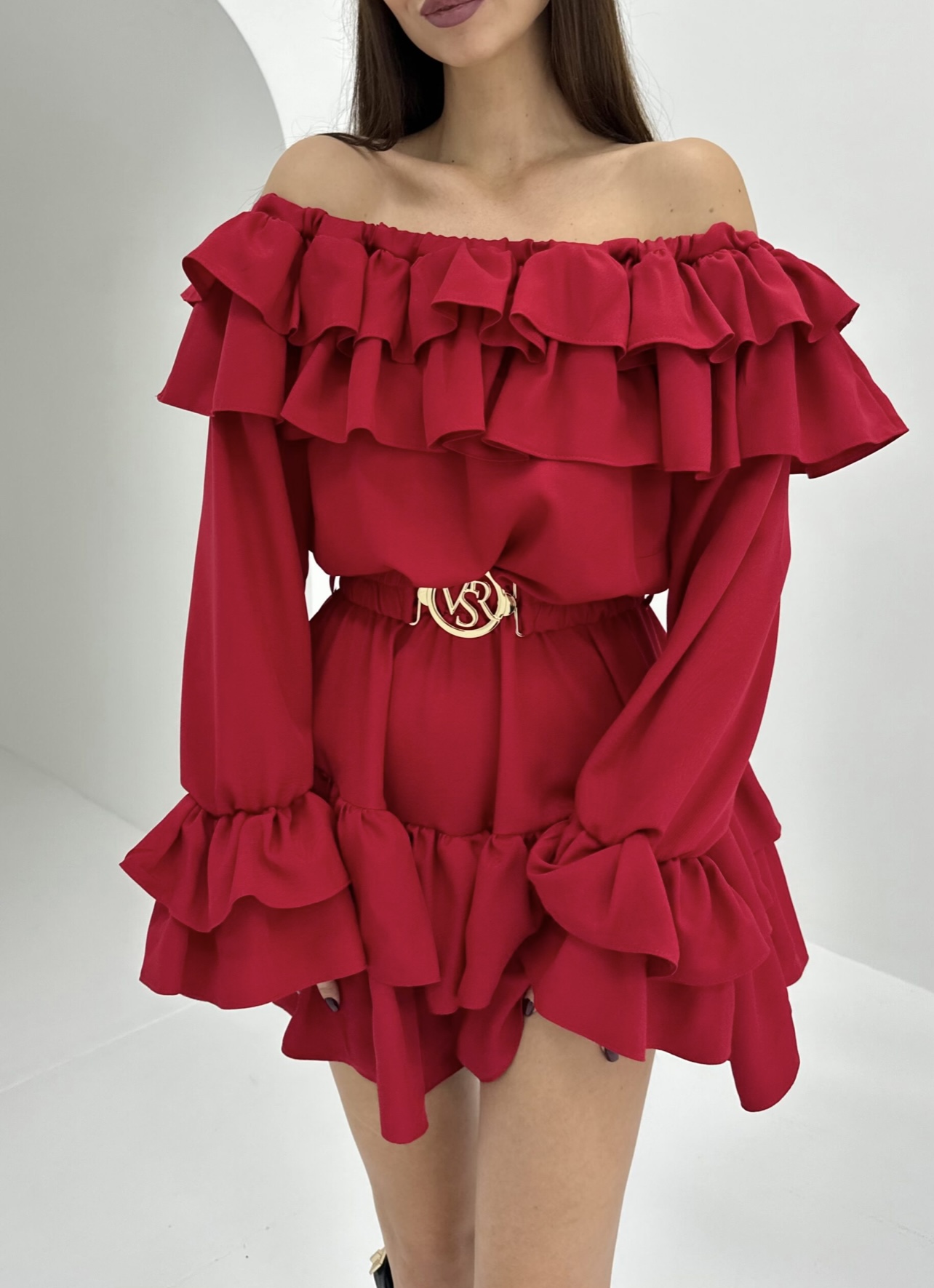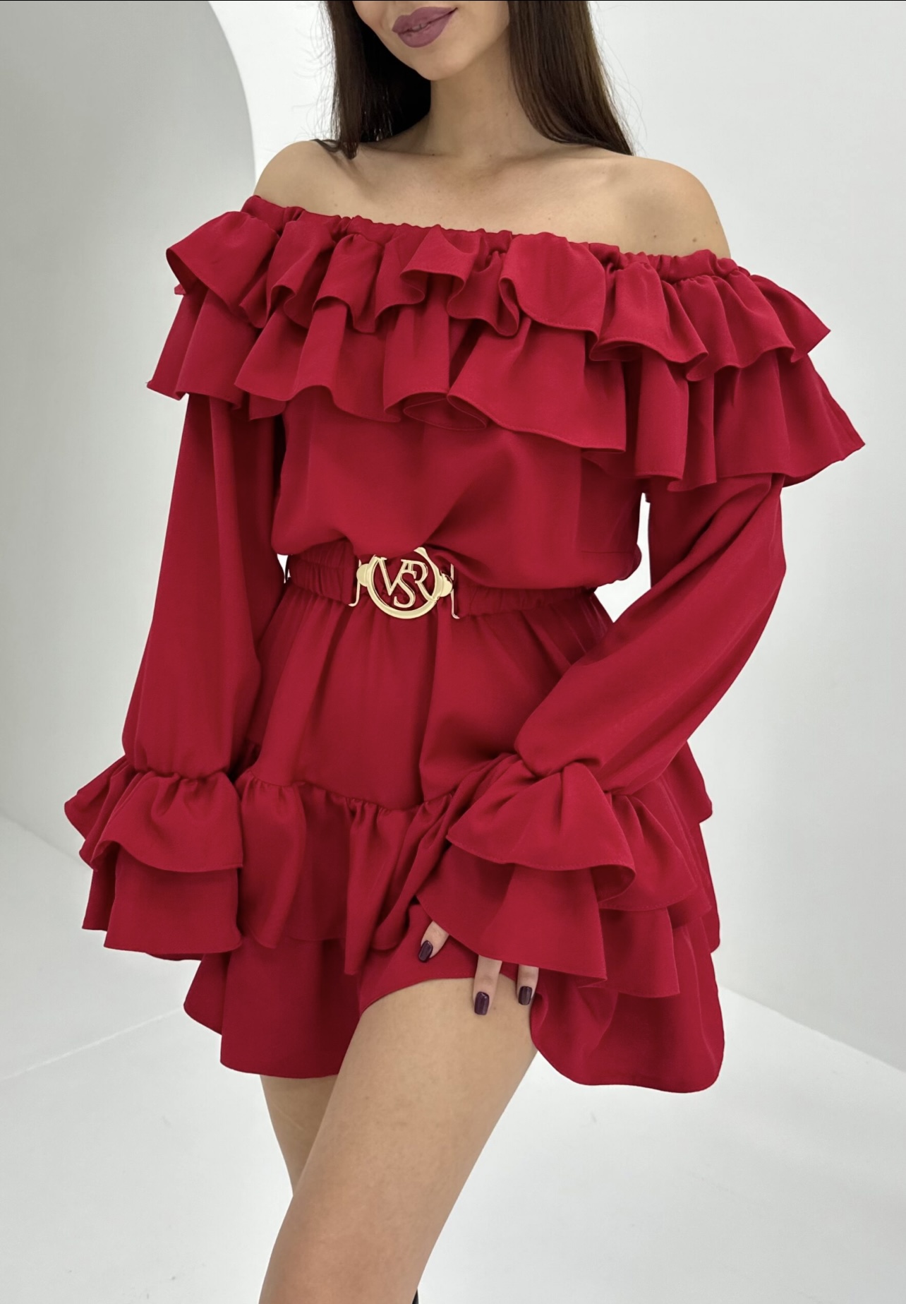Obleka z dolgimi rokavi na naramnico-Zadnji kosi