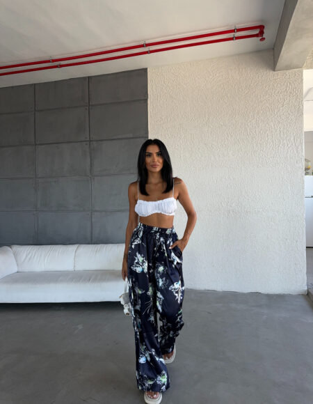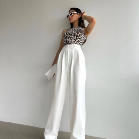 Hlače z visokim pasom bele in črne barve ZADNJI KOSI